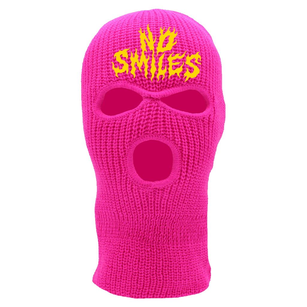 "No Smiles Yellow Puff Embroidery" | Pink 3-Hole Ski Mask [ONLY 5 MADE]