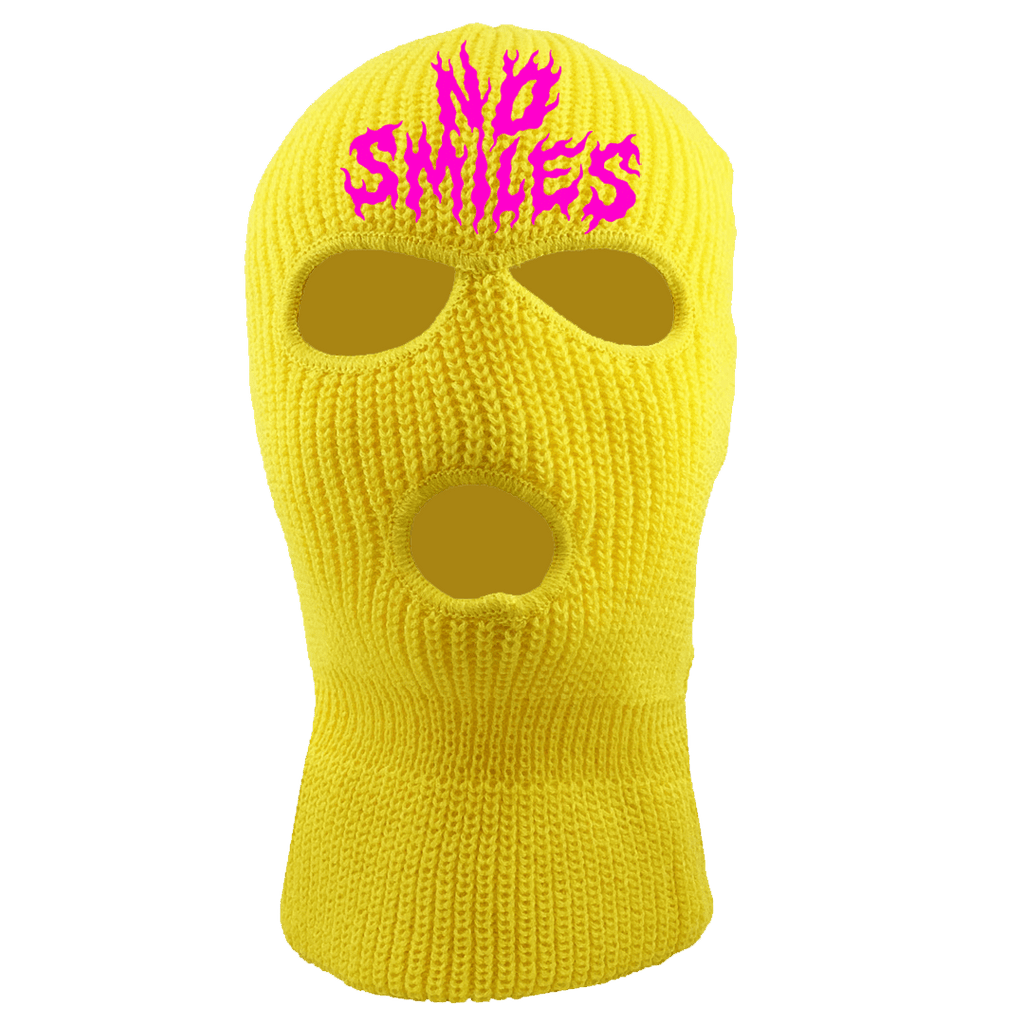 "No Smiles Pink Puff Embroidery" | Yellow 3-Hole Ski Mask [ONLY 5 MADE]